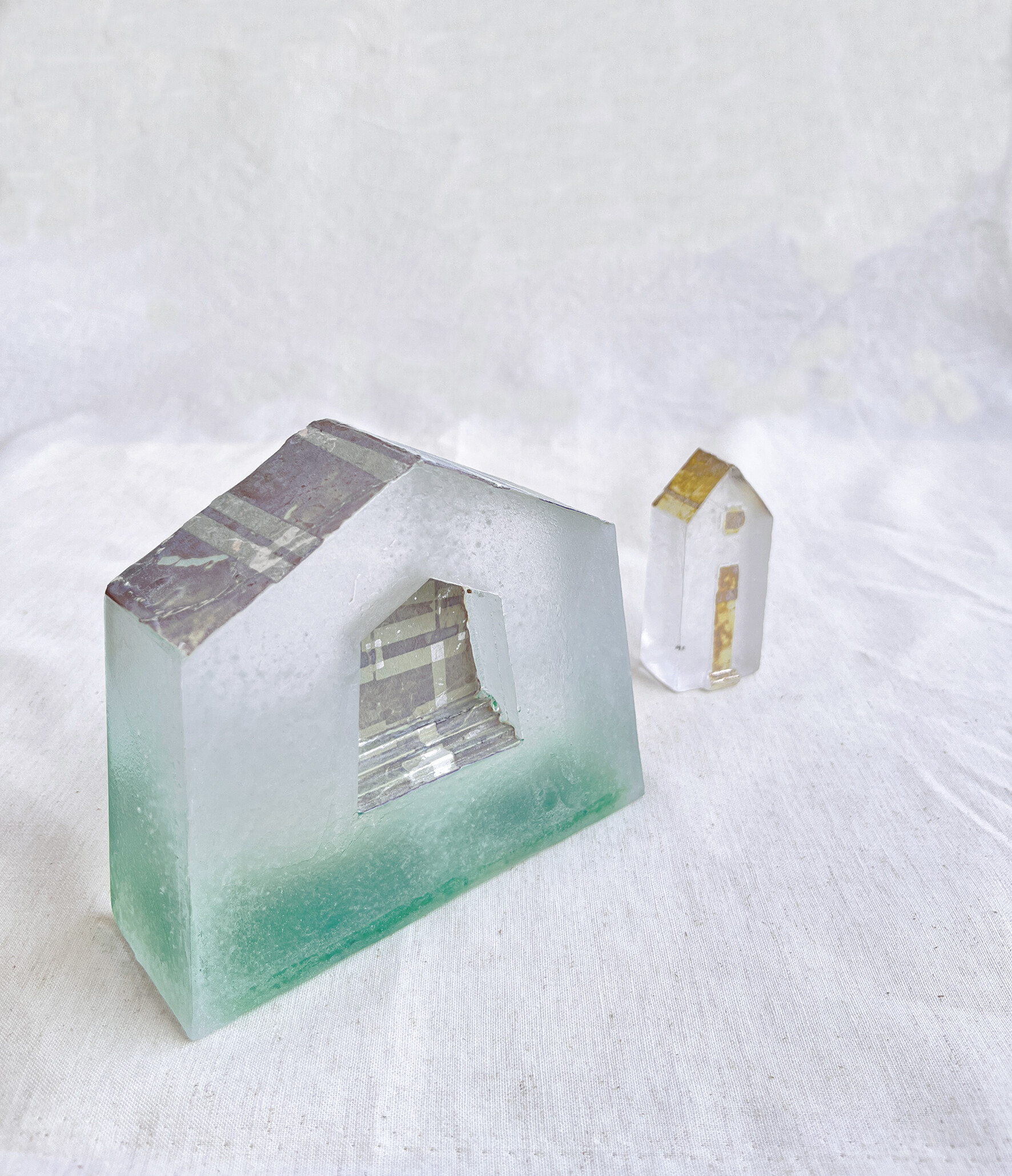 持永貞子 個展「-時の記憶-」を開催いたします。 持永は、パート・ド・ヴェール技法を用い、ガラスで「家」のかたちを表現 しています。作品は透明感と温もりをあわせ持ち、記憶の奥に潜むやさしい 時間を呼び起こします。 本展では、額装作品とオブジェを展示いたします。ガラスの透過する光が描 き出す情景は、観る人それぞれの心に懐かしさや穏やかさを響かせます。 どうぞこの機会に、時を超えて広がる「記憶の風景」に触れていただければ 幸いです。